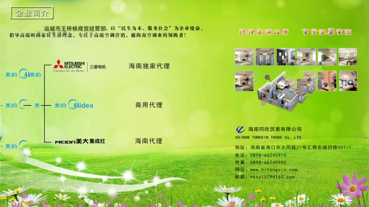 武汉市絷盾商贸有限公司是三菱电机家用和商用空调全省独家代理, 美的商用变频空调和空气能热水器全省独家代理,浙江美大集成灶海南省代理。