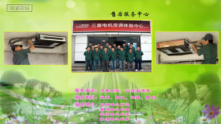 我们以“人才成就企业,企业造就人才”为人才发展战略,拥有一支骁勇善战的销售团队,销售网络覆盖海南省18个市(县),100多个营销网点,售前、售中和售后均实行专业的网络系统管理,对空调安装、维修实行百分百的跟踪回访服务。凭借自身完善的销售网络平台和优质服务,我们成为国内外知名的空调厂家(三菱电机、美的等)指定的海南区域批发、零售、安装维修服务单位。